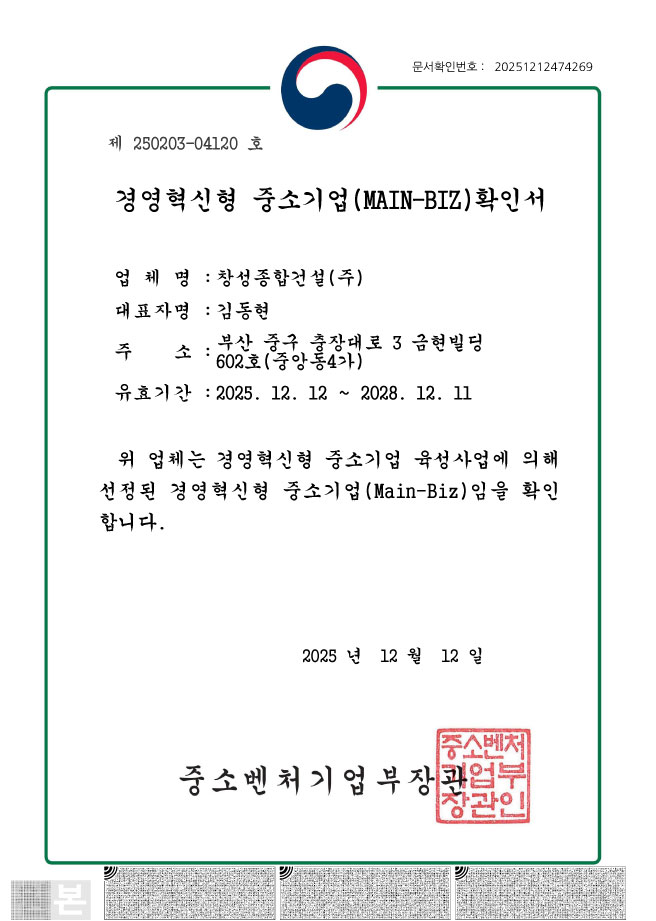 경영혁신형 중소기업 확인서